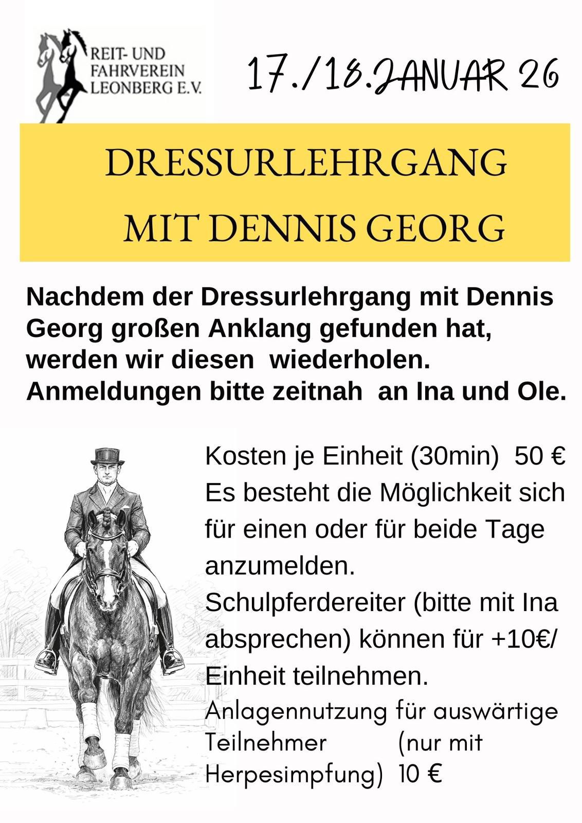 - Last Minute: Dressurlehrgang mit Dennis Georg 5. Januar 2026